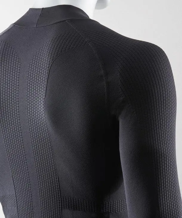 Healthier, better and more relaxed skiing! The Falke Impulse Ski long sleeve top made from skin-friendly polyamide activates sensors at the stomach, back and shoulders and is designed to improve the stability of the torso. The stretchy material has silicone nubs and innovative 3D knitted material which strengthens the muscle control in the area around the lumbar vertebrae and stomach muscles and trains coordination. The massage zones at the arms stimulate blood circulation, promote heat management and therefore provide warmer hands when skiing. Improved body awareness, a lower risk of injury and better coordination while skiing can be additional benefits of the Impulse Ski top. The best comfort and pleasant climate control round out the functionality of the top.