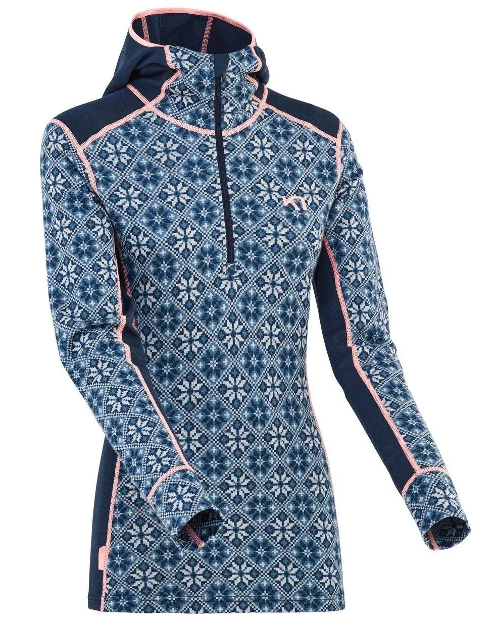 The Kari Traa Rose Hood is a 100% Merino wool half-zip women’s baselayer top with a classy, feminine, Nordic-inspired design and a slim, sporty silhouette. Combining wool and 4-way stretch, it gives you ooh-factor next-to-skin comfort, natural odor-resistance and breathability. Feeling the cold after storming a peak? Then flip up the slim hood – it will fit under other layers. A must-have.