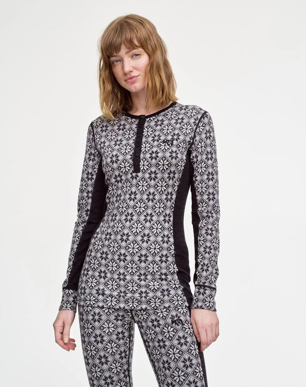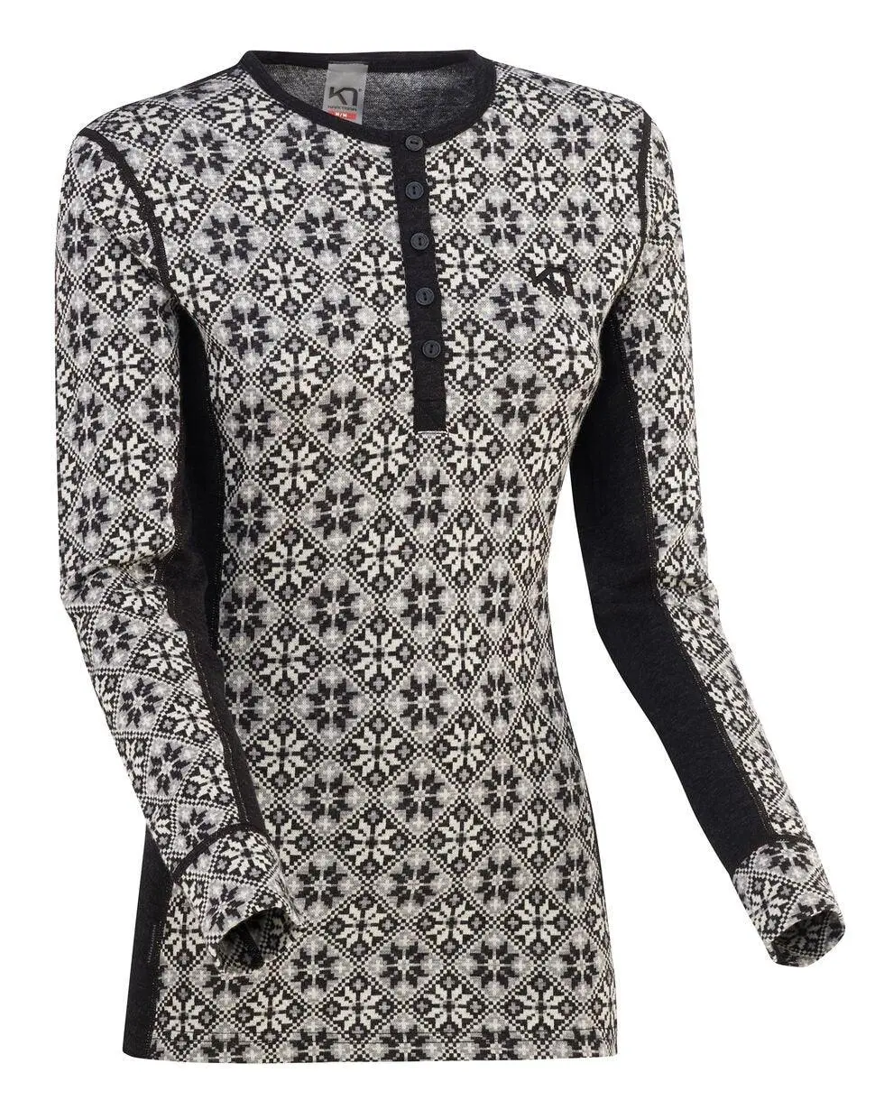 The Kari Traa Rose Long Sleeve is a mid-weight, merino baselayer crew with a classy, feminine, Nordic-inspired floral design and a slim, sporty silhouette. Combining ethically sourced wool and 4-way stretch, this top offers next-to-skin comfort, natural odor-resistance, and breathability. A round neck and raglan sleeves make layering a cinch.