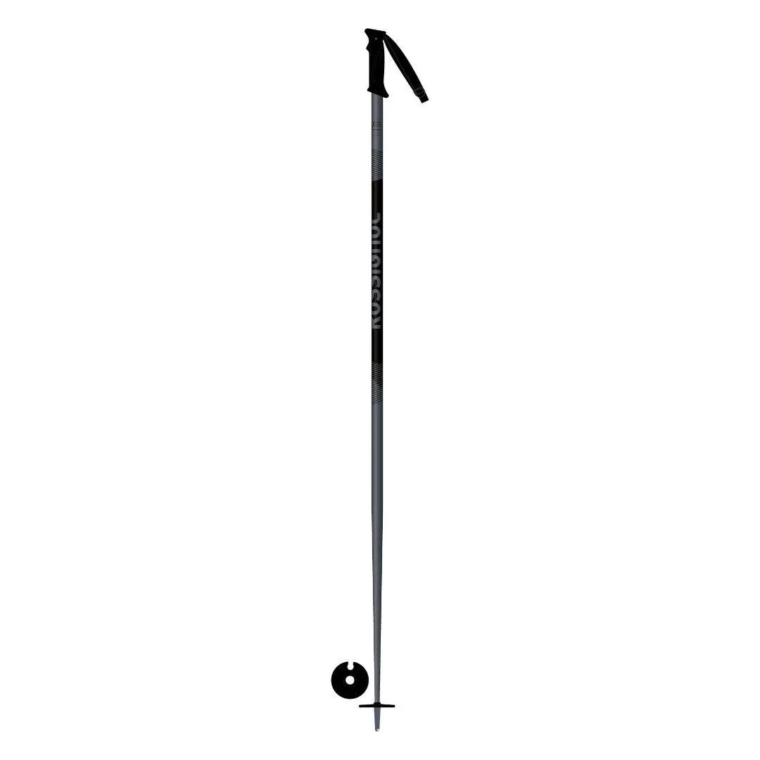 The Rossignol Tactic aluminum ski pole offers all-mountain versatility in a durable aluminum shaft that balances strength and weight. Ergonomic grips maintain a secure feel in gloved hands.