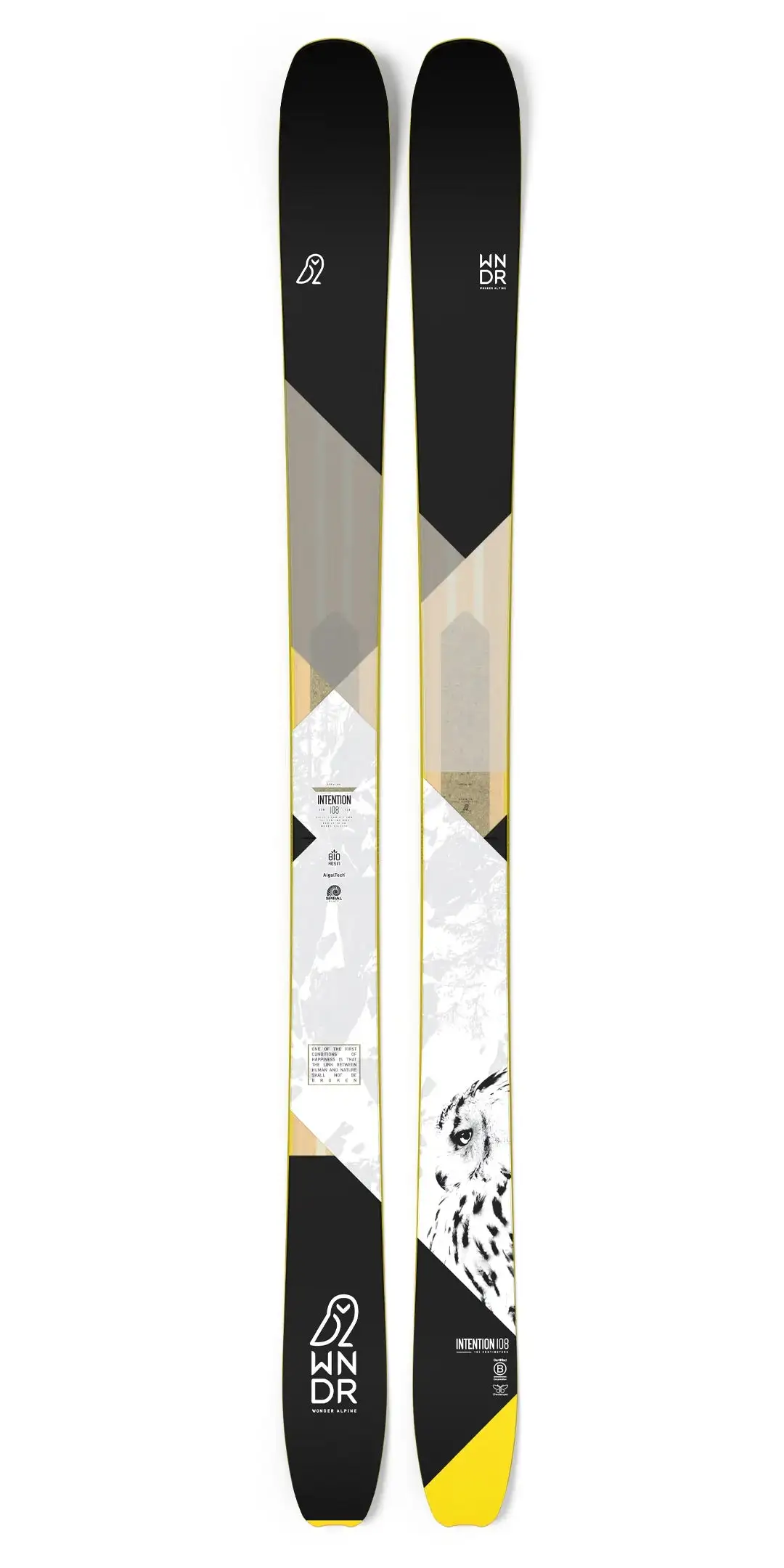 The all-new WNDR Intention 108 is here. With a slightly shorter turn radius and moderately stiffer flex than its predecessor, the Intention 108 is an outspoken yet creative dreamer. The Intention 108 is your thoughtful yet boisterous friend who likes to get rowdy on the descent while supporting your efforts when you hit the skin track. Unphased by your reservations in variable and unpredictable snowpack, its naturally derived bio-based materials unlock intuitive and balanced big mountain instincts.